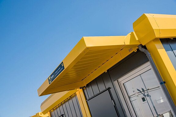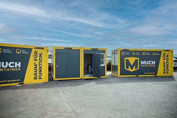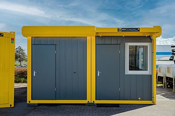 Die Anlage besteht (bspl. Fotos) aus einem 20' Raumcontainer mit WC + Dusche und einem gängigen 20' Raumcontainer.