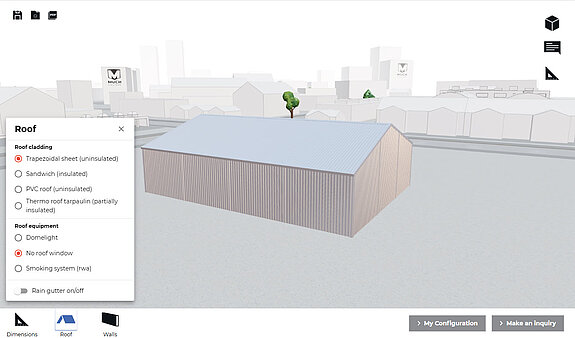 Choose from trapezoidal sheets, sandwich panels, PVC roofs, or thermo roof membranes. Add extras like skylights, smoke and heat extraction systems (rwa), or rain gutters for optimal functionality.
